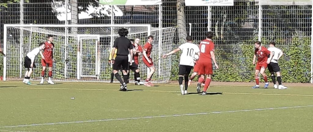 Im Hinspiel mussten wir uns noch mit den Wittenern die Punkte teilen, doch gestern gab es für die Gäste nichts zu holen. Bei herrlichem, sommerlichem Wetter war unsere Marschroute von Beginn an klar: Weitere Punkte wollten wir gegen Herbede nicht abgeben und uns natürlich auch weiterhin in Stellung halten, falls oben nochmal gepatzt wird. Zwei Änderungen gab es in der Startelf, beide betrafen die Viererkette: Grundi kehrte auf seine angestammte LV-Position zurück und Joshi nahm den Platz von seinem Bruder in der IV ein. Wir begannen eher etwas verhalten und waren zu Beginn des Spiels noch nicht so präsent in den Zweikämpfen, wie wir es gerne gehabt hätten. Auch mit Ball fehlte es manchmal an Klarheit und Präzision im Passspiel, weshalb wir uns wenig Angriffe herausspielen konnten. Schnelle Umschaltmomente und vor allem zügige, horizontale Verlagerungen gelangen uns kaum. Ein erstes Mal nach guten 25 Minuten, als Pascal einen Einwurf in den Fuß von Moritz warf, der sich aufdrehte und auf Davids rechte Seite verlagerte. David hatte nun ein bisschen Raum, den er mit seinem Tempo zu nutzen wusste. Die Hereingabe konnte zwar geblockt werden, aber es wurde endlich einmal sichtbar, wie es klappen kann. Kurz darauf mussten wir das erste Mal wechseln. Justus wurde bei einem Luftzweikampf weggestoßen und fiel übel hin. Anschließend klagte er über etwas Atemnot und Schmerzen im Hüftbereich, weshalb wir kein Risiko eingingen und Fynn in die Partie brachten. Dennoch plätscherte das Spiel ein wenig vor sich hin, weil Justus und Pascal sowie später auch Fynn einerseits die Diagonalbälle der Gäste gut wegverteidigt haben, wir alle es andererseits aber noch verpassten, klarer im Angriffsspiel zu werden. In Minute 38. schlugen wir dann aber erstmalig zu. Ein scharfer Vertikalball zum eingerückten Brötzi war der Dosenöffner. Brötz nahm den Ball technisch versiert mit und schickte seinen Gegner mit einer Drehung ins Kino. Der Ball wurde zu Berki weitergeleitet, dessen Schussversuch geblockt wurde. Als der Ball an den Fünfer trudelte und rechts vom Tor lag, setzt Berki beherzt nach und machte das Leder nochmal scharf. Sein Abschluss wurde abgefälscht und senkte sich als Bogenlampe ins lange Eck. Mit diesem 1:0 gingen wir in die Pause. Klar war aber auch, dass wir eine Schüppe drauflegen mussten, um den Sieg nach Hause zu fahren.