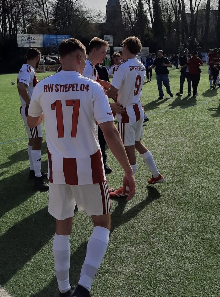 Was Derby bedeutet, wurde letzte Woche hinlänglich ausgeführt. Dass uns in Weitmar eine ähnlich schwere Aufgabe wie gegen Wiemelhausen erwartet, war uns natürlich bewusst und dementsprechend engagiert und couragiert gingen wir in diese Auswärtspartie. Die Anfangsviertelstunde gehörte ausschließlich den Jungs aus dem Königreich, die den Plan verfolgten, Weitmar früh ins Hintertreffen zu bringen. Und die Art wie dies gelang, war mehr als sehenswert. Nach 9 Minuten ließen sich Jussi und Brötzi nicht vom Pressing der Gastgeber aus der Ruhe bringen und fanden die Lücke ins Zentrum. Dort agierte heute Nick, der kurzfristig in die Startelf rutschte und dem Trainerteam das Vertrauen mit einer sehr starken Partie zurückzahlte. Genau dieser Nick war es, der bei der Ansprache vor dem Spiel gut zugehört hatte und den Ball zügig von der rechten Seite auf den linken Flügel verlagerte. Ron nahm Tempo auf und ließ den Ball dabei an seinem Fuß kleben, als sei es das einfachste von der Welt. Der Außenverteidiger stellte sich ihm in den Weg, doch Ron schickte ihn ins Kino, wo er vermutlich immernoch auf die Vorstellung wartet, und jagte die Kirsche danach aus 20 Metern unter die Latte. Zack – 1:0 für Stiepel. Doch je länger die Partie andauerte, desto unsortierter und wilder wurde es auf dem Platz. Wir verloren ein Stück weit die Kontrolle über das Tempo und so ging es viel zu oft und viel zu schnell quer über Platz. Die fehlende Kompaktheit führte zwar nicht dazu, dass wir hinten anfällig wurden, doch unsere Angriffe hatten kaum Struktur. Nach rund 25 Minuten spielten wir dann mal wieder einen geordneteren Angriff. Ein Klatschball von Kanschik auf Nick wurde direkt auf den linken Flügel tief gespielt, wo Mo einlief und den Querpass durch die Box spielte. Seine Hereingabe war allerdings etwas zu scharf und Brötzi kam nicht mehr heran. Erwähnenswert bleiben auf der anderen Seite zwei Aktionen: Einerseits eine schöne Parade von Heini, der heute mit Bravour Köppen vertrat, und andererseits eine Rettungsaktion von Janni kurz vor der Linie, als eine Unstimmigkeit zu einem Schuss auf ein weitestgehend verwaistes Tor führte. Als die erste Halbzeit sich dann so langsam Richtung Ende neigte, überschlugen sich nochmal die Ereignisse. Einen Eckball von links zogen die Gastgeber an den Fünfmeterraum, Heini kam zwar noch heran, doch seine Abwehr landete im Getümmel, aus dem ein Spieler der Gastgeber humorlos einnetzte. Doch unsere Reaktion war überragend: Wir besinnten uns nochmals auf die Vorgaben und fanden kurzzeitig wieder in unsere Struktur. Wieder war es Nick der den Angriff einleitete: Im Zentrum von zwei Gegnern nicht nur gestört, sondern eigentlich auch gefoult, blieb er auf den Beinen und spitzelte den Ball nach rechts, wo Berki geistesgegenwärtig den flachen Vertikalball auf Brötzi spielte. Der Außenverteidiger kam nicht mehr hinterher und Brötzi servierte butterweich auf den zweiten Pfosten, wo Ron seinen Doppelpack schnürte. Hiernach durften wir verdient mit einer Ein-Tor-Führung in die Halbzeitpause gehen.
